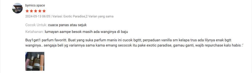“Tau parfum ini gara gara event dan ternyata wanginya emg seenak itu ini udh…..”